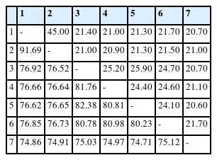 Distribution of Clusters of Orthologous Groups (COG) functional categories in strains CBA3605T, CBA3606T, their closely related type strains, and strain DSM 20174T of the genus Lactiplantibacillus (abbreviated as Lp.). The highest, second-highest, and third-highest gene counts for each strain are indicated in bold. Strains: 1, CBA3605T; 2, CBA3606T; 3, Lp. daoliensis 116-1AT; 4, Lp. nangangensis 381-7T; 5, Lp. pingfangensis 382-1T; 6, Lp. brownii WILCCON 0030T; 7, Lp. plantarum DMS 20174T (type species of the genus Lactiplantibacillus)