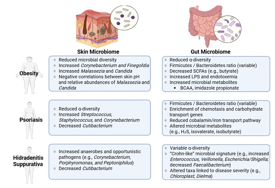 | Haskin et al. (2016) | 632 HS patients | Bacterial culture of purulent drainage | The odds of detecting Firmicutes were 3.1 times higher in obese HS patients than in non-obese counterparts. | Culture-based (bias against unculturable bacteria); lack of control; potential confounders (antibiotic exposure and comorbidities) are not systematically controlled. |