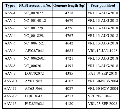 Table 1.13 AAV genome information was collected by NCBI. DNA analysis was conducted using the data from the table, and amino acid sequence information was subsequently collected
