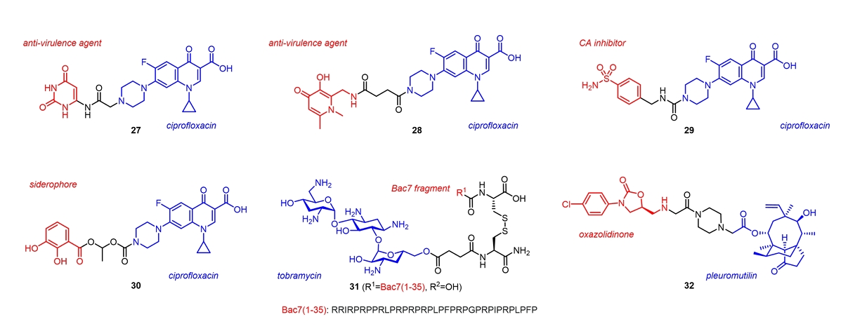 Fig. 4.Recent examples of non-β-lactam-based antibiotic hybrids.