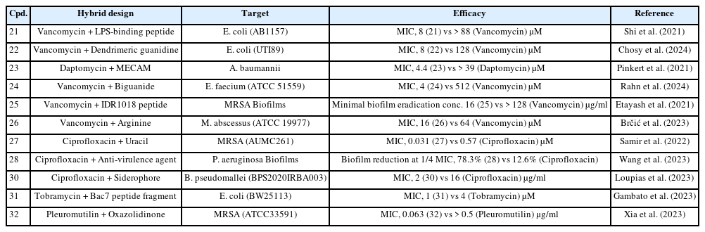 Table 1.Representative β-lactam-based antibiotic hybrids and their comparative efficacy
