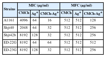 Table 1.Drug susceptibility test of CMCh, Ag⁺, and CMCh-Ag⁺