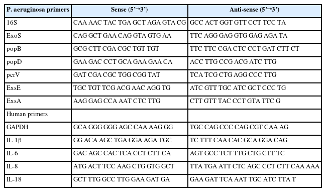 | P. aeruginosa primers | Sense (5’→3’) | Anti-sense (5’→3’) |