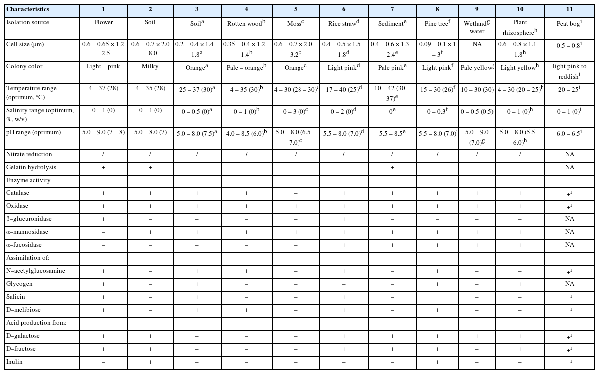 Ecologically, a significant number of Mucilaginibacter species have been described to be originating from soil and freshwater environments (54 of the 81 validly published species in the genus) (Baik et al., 2010; Joung et al., 2014, 2015; Kang et al., 2021; Kim et al., 2013, 2020, 2022; Seo et al., 2020; Urai et al., 2008; Zheng et al., 2016). There are also species that tolerate several extreme conditions reported from cold as well as marine environments (Kang et al., 2013; Kim et al., 2022; Yoon et al., 2012; Zheng et al., 2016). A significant number of phyto-associated species have also been described from environments such as tree barks, stem, leaves and rotten wood (Aydogan et al., 2016, 2017; Kämpfer et al., 2014; Kang et al., 2021; Khan et al., 2013a, 2013b; Zhang et al., 2019). Previous reports have indicated that genomes of Mucilaginibacter species harbor genes that help them to well-adapt to their environments such as metal binding chaperones in case of Mucilaginibacter kameinonensis and M. rubeus isolated from gold and copper mines and DNA-repair as well as cold-stress response genes in several Mucilaginibacter species from the Arctic tundra soil (Kumar et al., 2025; Li et al., 2018). In the course of exploring the beneficial bacteria in agricultural environments, we isolated two strains of Mucilaginibacter, GGG-R5T from flower and M4-18T from soil in the Republic of Korea. The present study aimed to elucidate the exact taxonomic position of strains GGG-R5T and M4-18T by using a polyphasic approach based on the combination of phenotypic and genotypic characteristics.